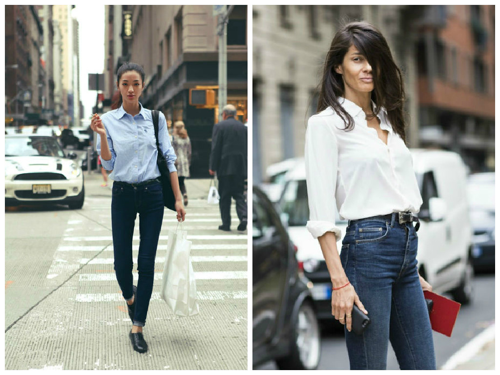 Деловой образ лучше всего построить на брюках свободного кроя - джинсы-клеш, джинсы со стрелками, либо джинсы прямого кроя подойдут лучше всего. Главное отказаться от любимых скинни, которые могут выглядеть вызывающе и от джинсов-бойфрендов, которые придадут образу слишком нарочитой небрежности.
