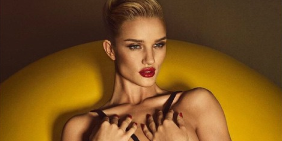 Для нового номера глянца подружка Джейсона Стетхэма предстала перед объективом фотографов Луиджи и Ланго в образе роковой искусительницы. На некоторых кадрах Рози позирует в соблазнительном купальнике, а на некоторых снимках на ней и вовсе нет ничего, кроме красной помады.