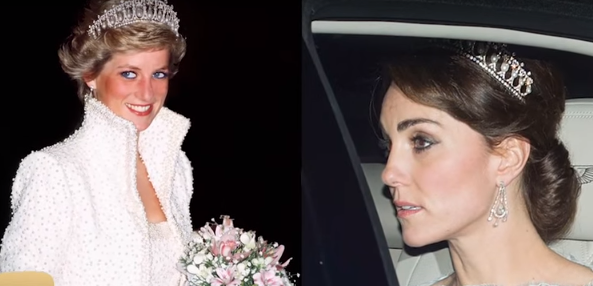 Этот выход в свет герцогини стал наиболее запоминающимся, так как на публику она появилась в тиаре, принадлежащей когда-то легендарной принцессе Диане, которую когда-то преподнесла на свадьбу королева Елизавета в 1981 году. Это настоящее произведение искусства с драгоценными камнями и одна из наиболее важных фамильных драгоценностей британской короны. Принцесса Диана рассказывала, что из-за своего веса тиара вызывала у неё головную боль, поэтому крайне редко она появлялась на публике в тиаре на голове.