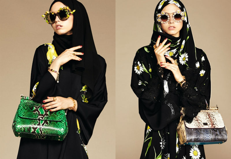 Доменико и Стефано, правда, не смотря на экстравагантный шаг, старались не перегнуть палку и выдержали всю коллекцию в черном, традиционном цвете. Не поленились итальянцы и осведомиться о том, что ислам не приемлет изображений людей на одежде, потому и принты в коллекции — растения и абстракция.