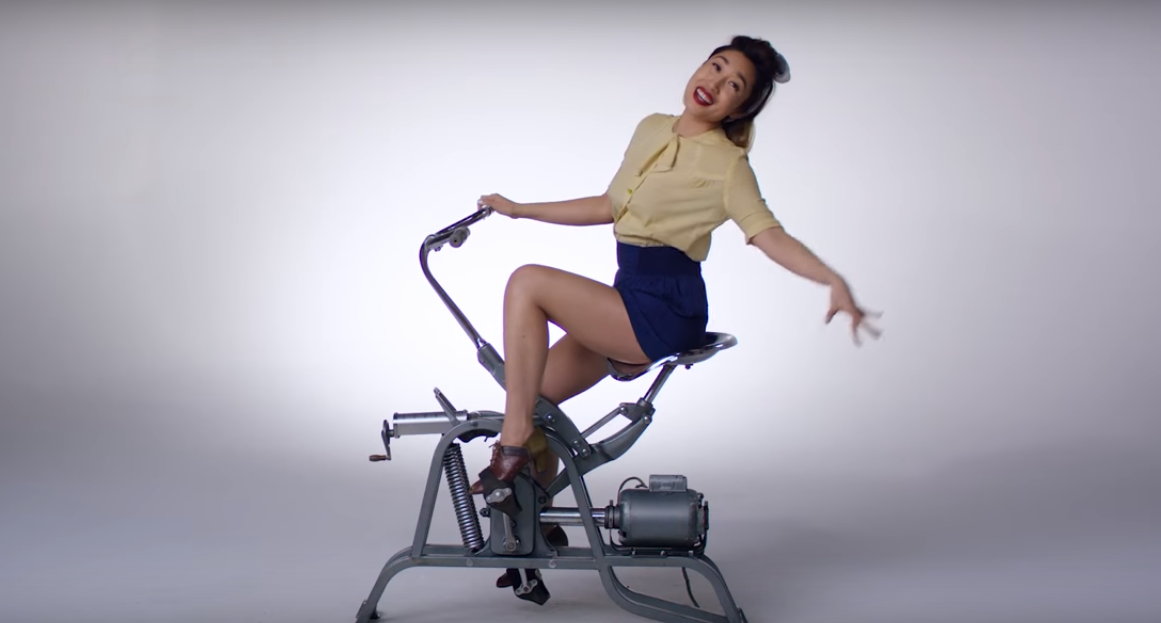 Так давайте же посмотрим, как изменилась мода с тех пор, вплоть до сегодняшнего дня. Приготовьтесь испытать всю палитру эмоций за три с половиной минуты. Все начнется с сострадания к несчастным дамам, вынужденным заниматься на каблуке и в длинных юбках, затем будет зависть от пин-ап костюмов, которые не каждая отважится и в город надеть. А закончится это все смехом сквозь слезы от блестящих спортивных костюмов и пестрых лосин, которые еще мы с вами застали в детстве.