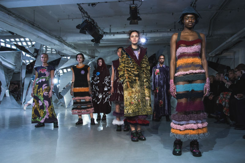 Бренд Yana Chervinska представила часть образов из новой коллекции FW16, главная тема которой – время, его быстротечность и влияние на различные предметы. Лондонской публике дизайнер продемонстрировала тяжелые гобеленовые пальто, полупрозрачные вязанные платья, украшенные декоративными аппликациями и созданные в сотрудничестве с художницей Алиной Замановой. Дизайнер и на этот раз использовала традиционные для коллекций бренда материалы: шерсть и пряжу, сочетание различных материалов с ручной вязкой.