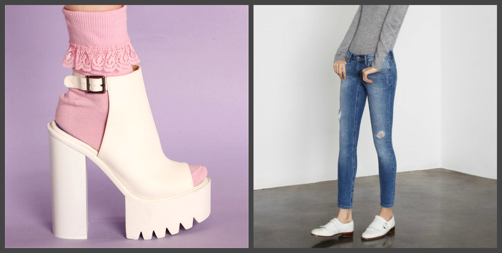 Давай признаемся, мало кого украшала массивная танкетка или платформа. Потому что такая обувь очень грубо смотрится на ногах, а особенно, если у тебя достаточно широкие щиколотки и икры, то такая форма обуви, скорее, уродует ногу, а не делает ее изящной. В моде простота, поэтому туфли-лодочки, тонкая подошва – это то, что тебе нужно. Никаких кричащих деталей и украшений на обуви, элегантность и изящество – вот самый главный тренд весны 2016. Так что отдавай предпочтение классическим белым кедам, а не ярким Nike, в которых и без того ходит каждая вторая девушка твоего города.