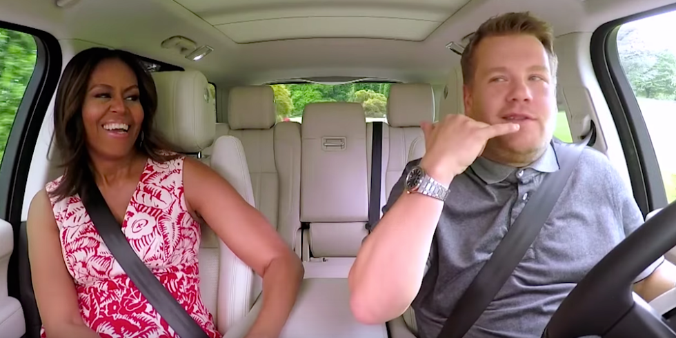 Мишель Обама стала гостьей последней выпуска известного в Америка комедийного авто-шоу Carpool Karaoke Джеймса Кордена. Ведущий не зря выбрал такую известную геронию - последний выпуск передачи однозначно запомнится зрителям надолго.