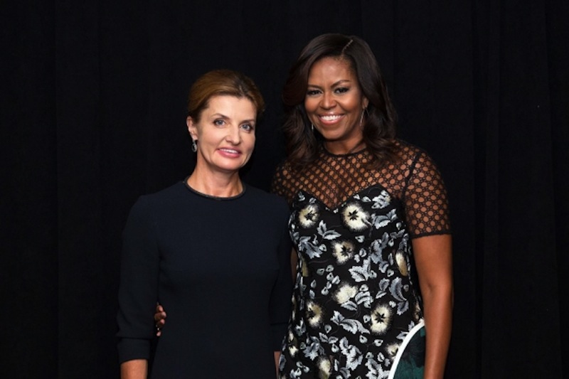 Первые леди США и Украины обсудили собственные проекты. Поговорить женщинам было о чем так как их проекты имеют схожую концепцию - Мишель Обама занимается вопросами образования девочек-подростков, а Марина Порошенко направляет свою помощь детям с ограниченными возможностями - она занимается вопросами социализации, воспитания и образования таких детей. Об этом на своей странице в Facebook написал президент Украины Петр Порошенко.