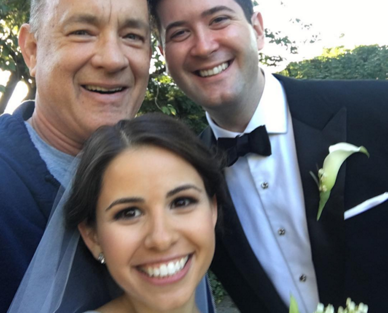 По словам свадебного фотографа Мэг Миллер, Том Хэнкс пробегал мимо позирующих молодоженов, она приостановила съемку, позволив актеру пробежать, но тот вместо того чтобы продолжить бег, подошел к молодоженам, поцеловал руку невесты и искренне поздравил их со знаменательным днем. Позже в Instagram появилось несколько снимков счастливых молодоженов в компании голливудского актера, наряд которого совсем не вписывался в праздничную концепцию, но от этого, счастливые улыбки на их лицах не исчезли.
