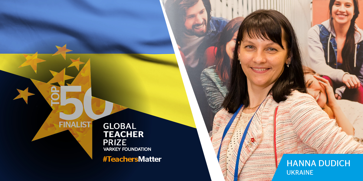 Преподаватель английского языка в гимназии им. Тараса Шевченко города Кропивницкий Анна Дудич стала первой представительницей Украины, оказавшейся в финале международного конкурса. В работе с учениками Анна применяет инновационные технологии, с которыми знакомится во время участия в грантовых программах. Будучи студенткой, Анна принимала участие в программе обучения по обмену. Заграницей она ознакомилась с американской системой образования, где убедилась, что украинской образовательной программе необходимы новые методы и идеи. Анне удалось построить собственный проект работы, который ориентирован на каждого отдельного ученика. Кроме того, преподавательница сотрудничает с иностранными школами, а ее ученики также добились немалых высот на международном уровне. Некоторые из проектов, предложенных гимназией в которой работает Анна Дудич были признаны на международном уровне и выиграли ряд наград: Macmillan competition, British Council Olympic Games competition, и второе место в Microsoft Global Forum. Сама Анна была удостоена наград от Американского совета, Британского совета и звания Учитель года на местном уровне в Украине.