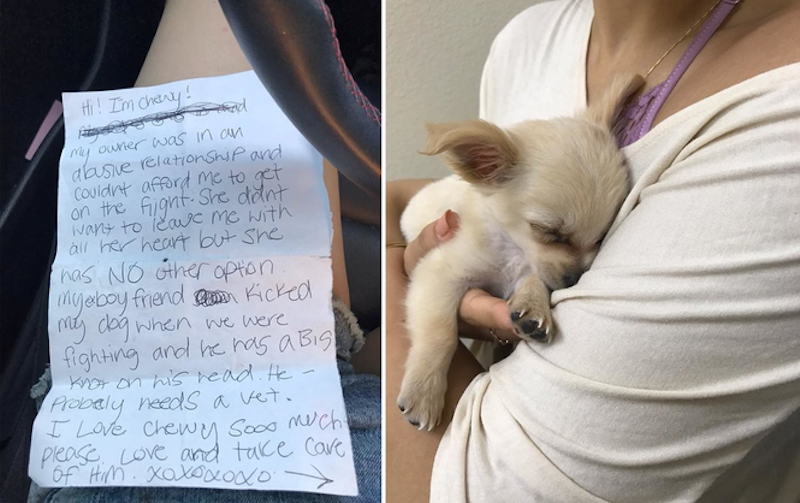 В коробке вместе с трехмесячным чихуахуа по кличке Чуи лежала трогательная записка от владелицы собаки, которая была вынуждена убегать и оставить щенка в аэропорту: