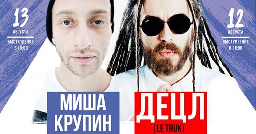 В субботу в 18:00 выступает Detsl a.k.a. Le Truk , в воскресенье в 18:00 Миша Крупин .