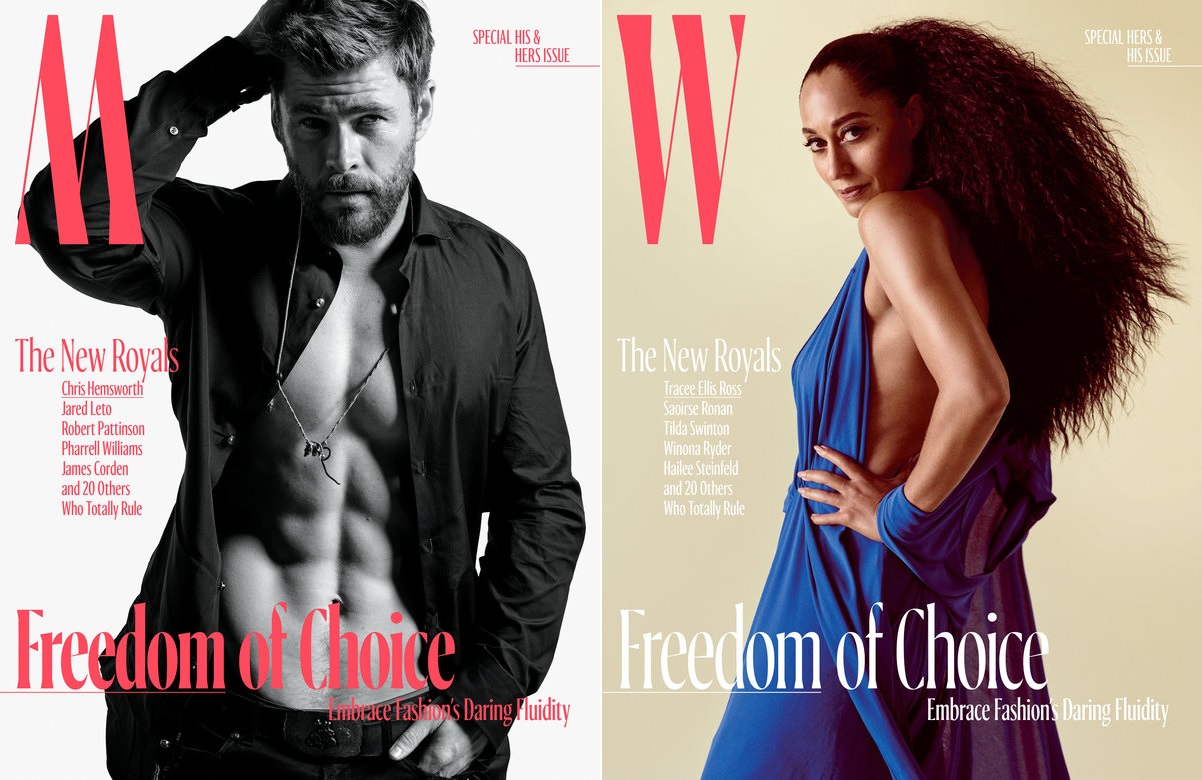 «Коды мужского и женского больше не фиксируются. В этом выпуске мы решили превознести женщину и мужчину, которые осмеливаются оспаривать стереотипы конвенции, выбирая именно то, кем они хотят быть. То, как вы одеваетесь, это не обязательно вопрос пола. Это еще один способ проявить себя» – сказан редактор W Magazine Стефано Тончи.