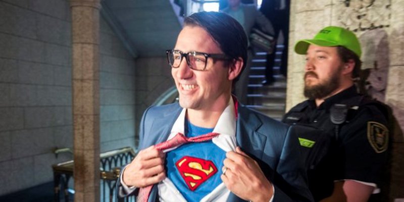 После встречи Трюдо вышел в образе Кларка Кента – в очках, красном галстуке и синем костюме. Расстегнув несколько пуговиц рубашки, политик продемонстрировал прессе классический логотип Супермена. Именно такой костюм политик выбрал для празднования Хэллоуина в этом году.