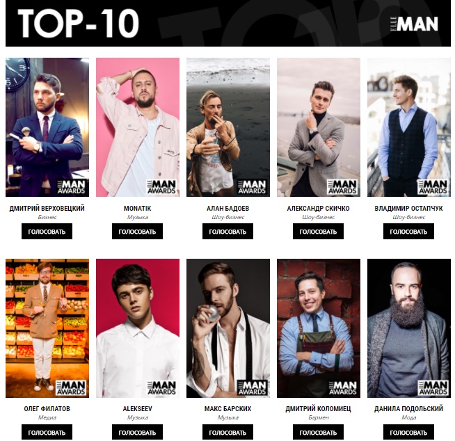 30 октября были подведены итоги голосования за самого стильного мужчину Украины. ELLE MAN AWARDS - первая и единственная в Украине модная премия для мужчин. Номинантами премии ELLE MAN AWARDS стали известные музыканты, дизайнеры, бизнесмены, спортсмены и другие публичные личности, достигшие успехов не только в работе, но и в выборе костюма. Победителя определяют читатели ELLE MAN во время открытого голосования на сайте.