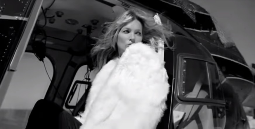 Модный дом Saint Laurent представил черно-белый клип, который стал частью рекламной кампании весенней коллекции бренда. Ролик был снят на вилле Malaparte на Капри, а главной героиней в нем стала Кейт Мосс. Одетая в брюки с бахромой и воздушную шубу белого цвета, накинутую на голое тело, модель парила в вертолете над океаном.