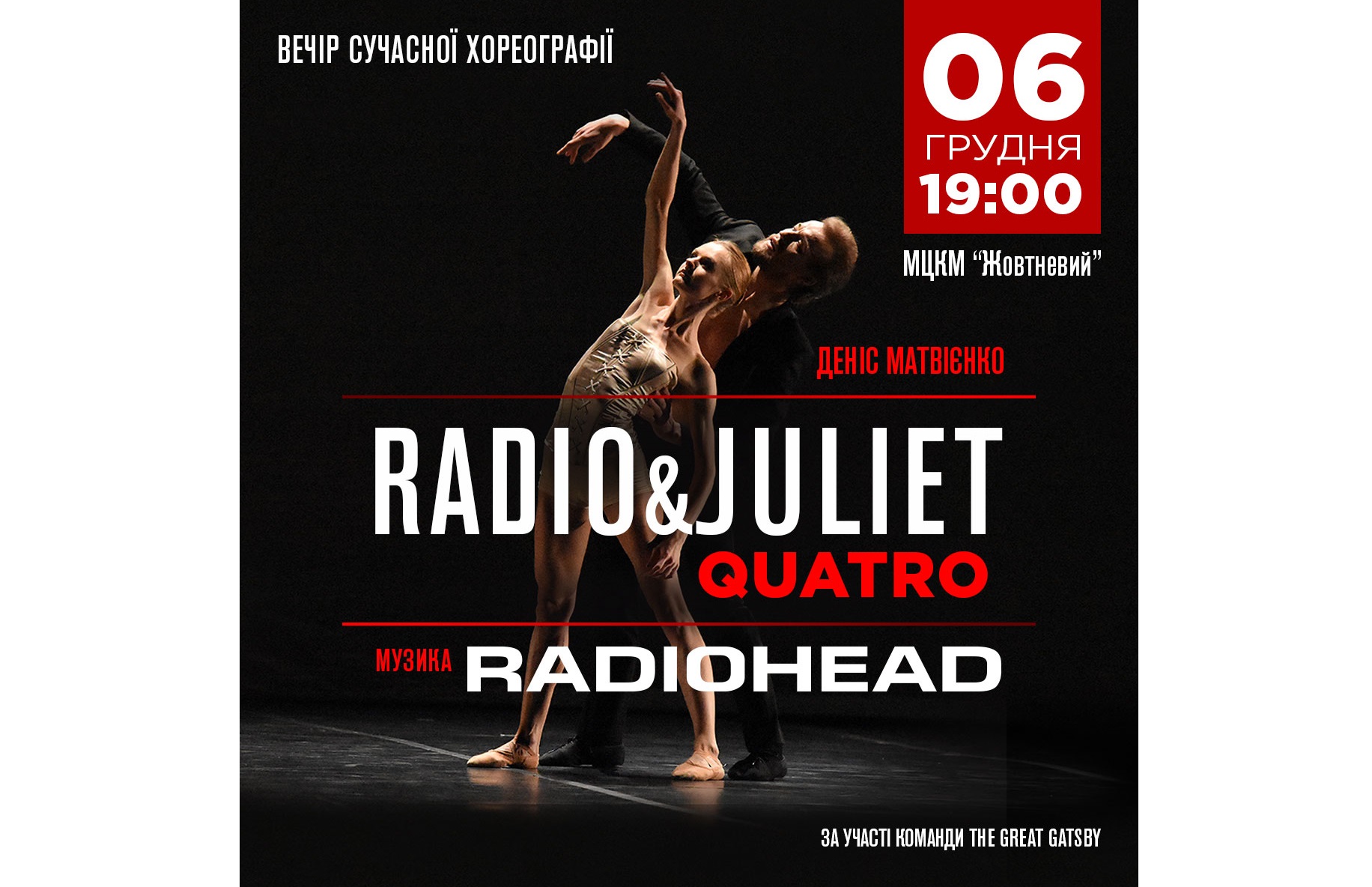 Рок и балет - вещи совместимые? С одной стороны, звучит как бред, а с другой - симбиоза лучше не придумать. Так решил в 2005 году словенский хореограф Эдвард Клюг. Он объединил трагедию Уильяма Шекспира «Ромео и Джульетта» и музыку культовой британской группы Radiohead. В результате получилась постановка «Radio and Juliet», которую в Киеве показывали 9 раз, а теперь покажут и в десятый.