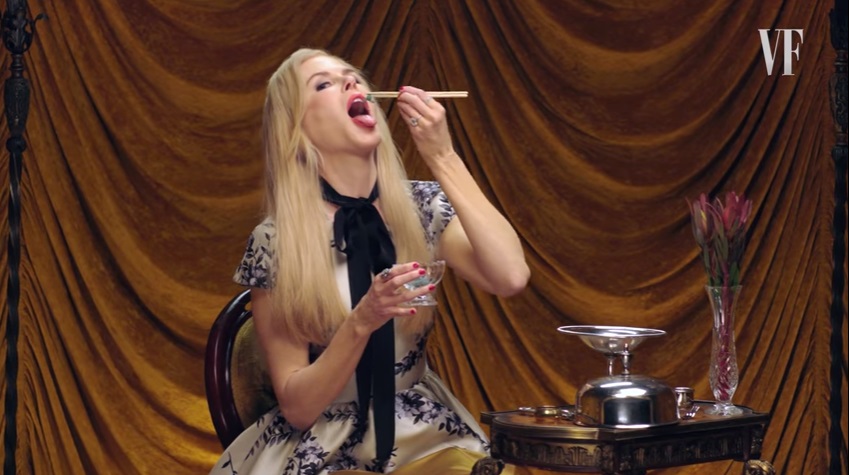 У издания Vanity Fair есть несколько довольно интересных видеорубрик, участие в которых принимают знаменитости. Одной из них является Secret Talent Theatre, где знаменитости демонстрируют свои скрытые таланты. Например, Кейт Бланшет как-то продемонстрировала падение в шпагат, Опра – собственный способ борьбы с пятнами от собачьих какашек, а на днях и Николь Кидман похвасталась своей сверхспособностью. Оказвается, актриса довольно неплохо справляется с поеданием насекомых. В том числе и живых.