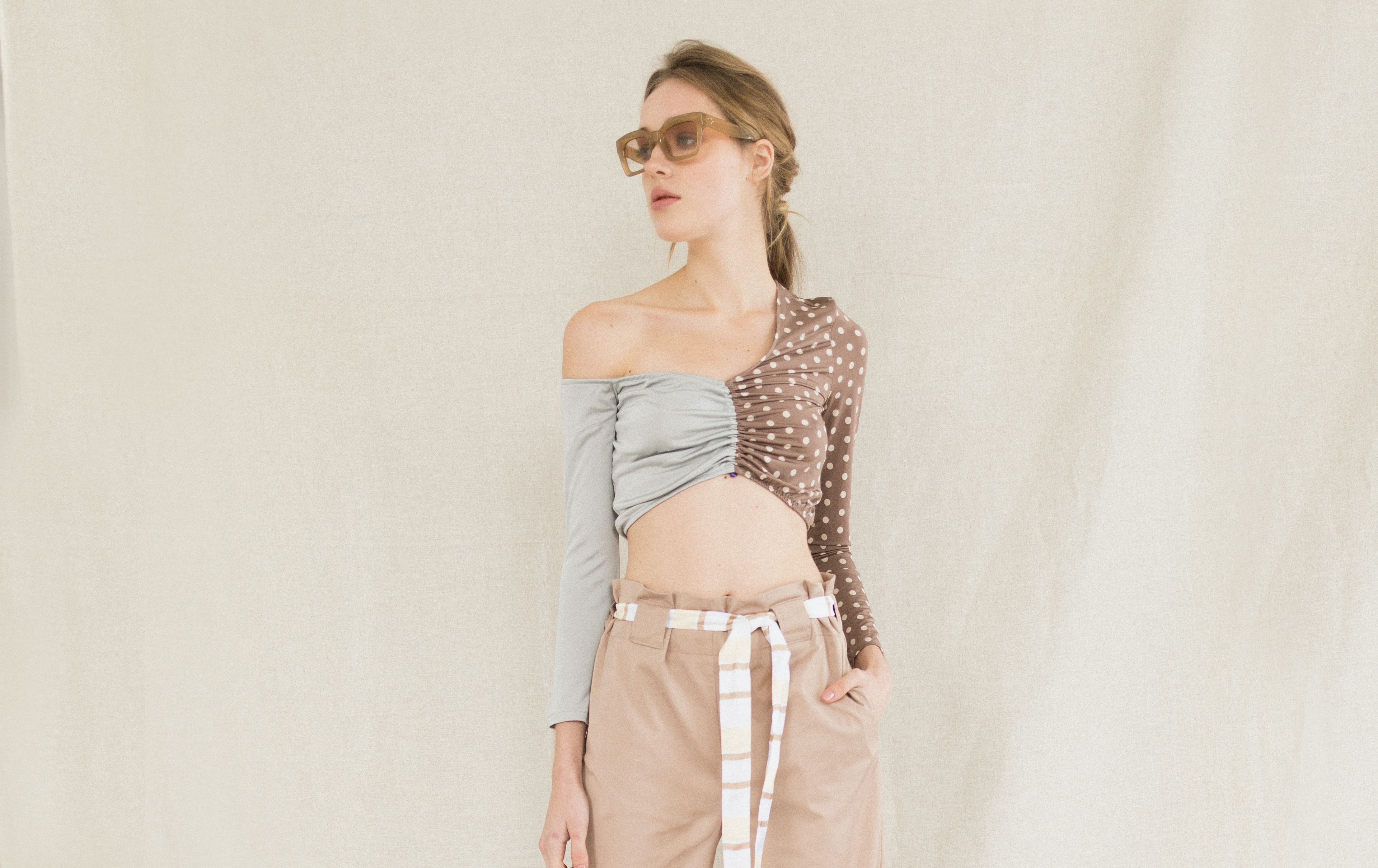 «Try me рассказывает о смелой, свободной и игривой героине. Мастерски соединяя противоположные детали, она умеет создать нестандартный и смелый образ. Важным остается посыл дизайнера об идеи разумного потребления вещей – а уже из него рождается ассиметрия в тандеме с пастельным колор-блоком и узором polka dot.