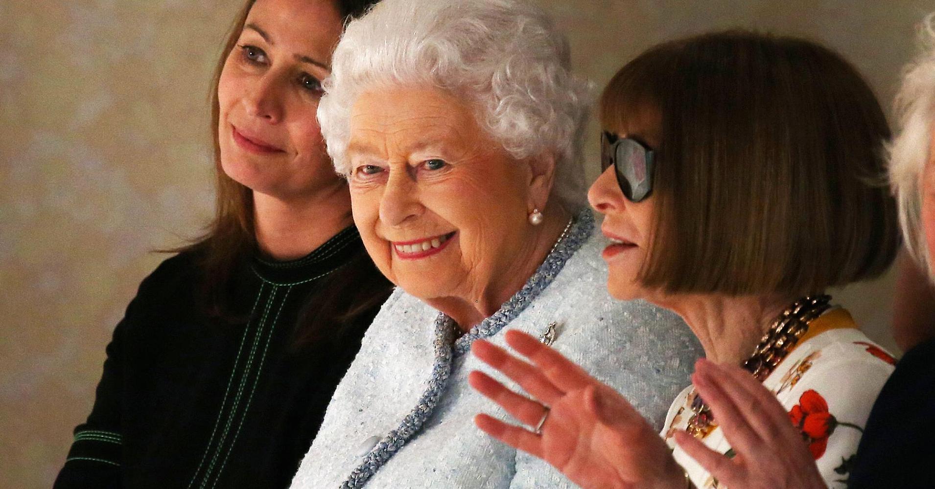 Королева Елизавета II в минувший вторник впервые в своей жизни посетила модный показ, который проходил в рамках лондонской Недели моды. Монарх сидела в первом ряду рядом с главным редактором американского Vogue Анной Винтур и внимательно следила за происходящим на подиуме.