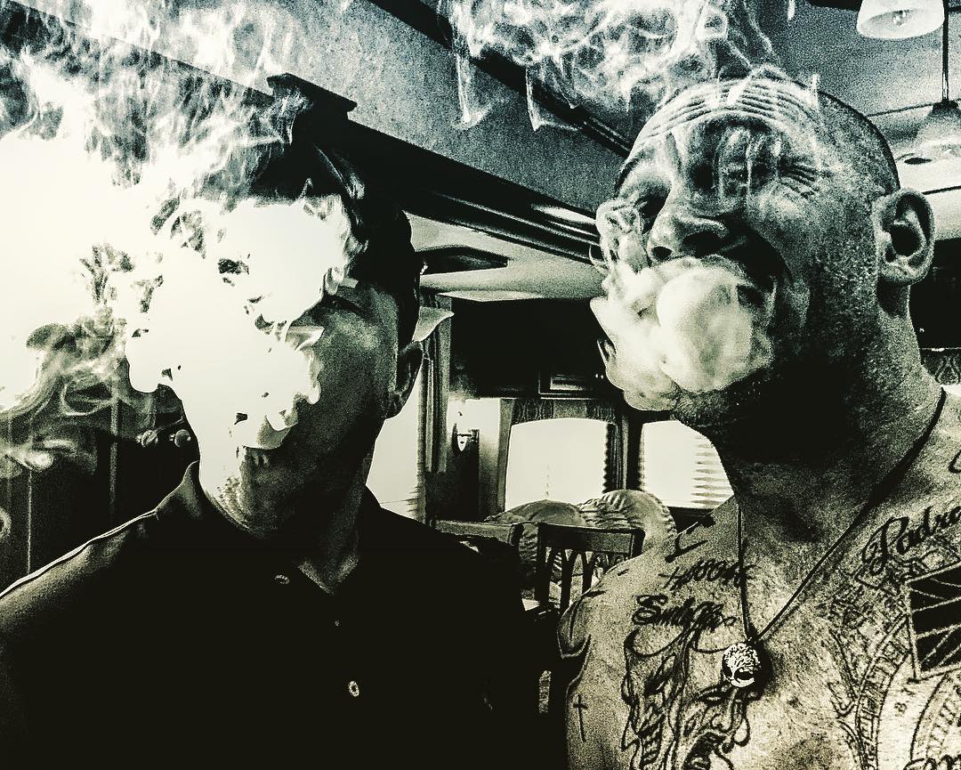На одном из снимков Харди вместе со Стивеном Грэмом дурачатся, выпуская облака дыма изо рта. Второй снимок показывает Харди в тюремной униформе, сидящего на стуле в раздевалке.