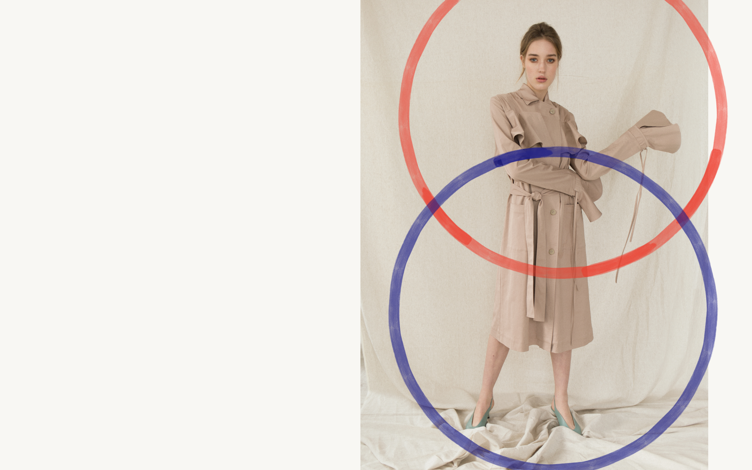 Весенняя коллекция Try me! предлагает три вариации плаща: монотонный бежевый, с кокеткой цвета весеннего неба – холодный голубой оттенок, и с растительным узором на нежном кружеве.