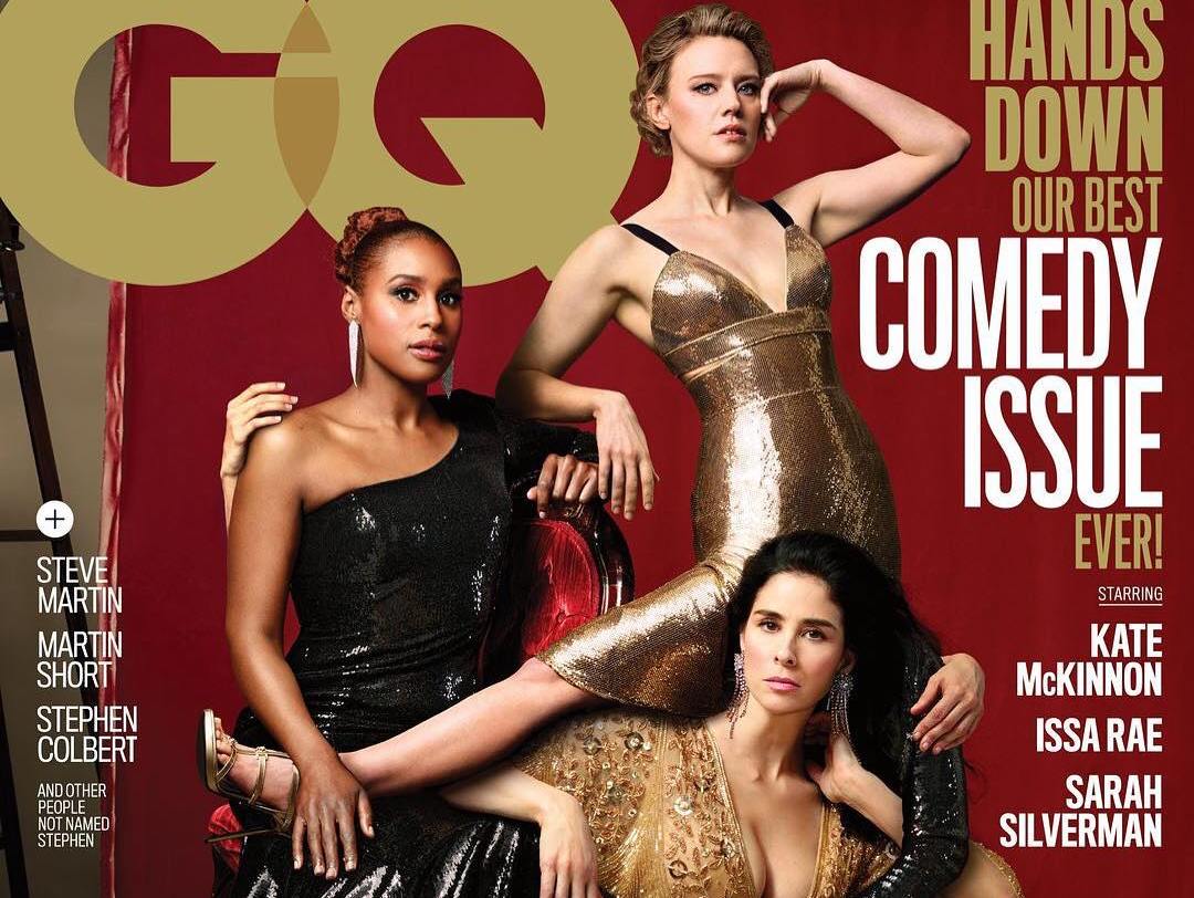 Комедийные актрисы Кейт Маккиннон, Исса Рей и Сара Сильверман украсили обложку нового выпуска журнала GQ, редакторы которого решили «подколоть» коллег из Vanity Fair, январская обложка которого была высмеяна пользователями за третью ногу Риз Уизерспун и третью руку Опры Уинфри. В GQ решили не мелочиться и «прифотошопили» каждой героине по дополнительной паре рук и ног. Своей идеей выпустить журнал с ироничной обложкой главный редактор GQ Джим Нельсон не делился ни с кем. Более того даже в Vanity Fair узнали о проделках коллег лишь после выхода журнала в продажу.