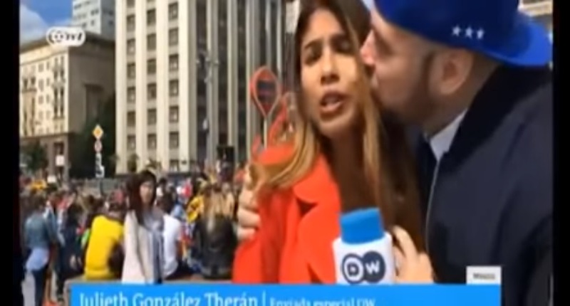 Репортер, работающая на Кубке мира в России, подверглась сексуальному домогательству в прямом эфире. Испанский новостной канал немецкой компании Deutsche Welle опубликовал фрагмент инцидента в социальной сети.