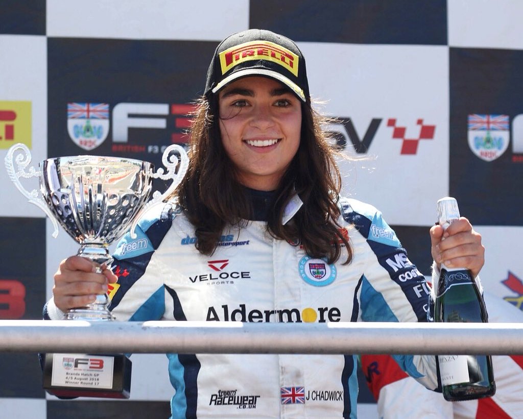 Джейми Чедвик стала первой женщиной, выигравшей британскую гонку Формулы-3. Пилот команды Douglas Motorsport переместилась с четвертого места на сетке до второго к концу первого круга. Ее главным конкурентом стал пилот из сингапурской команды Паван Равишанкар, но он получил 10-секундный штраф за фальстарт, что позволило Джейми Чедвик вырваться вперед.
