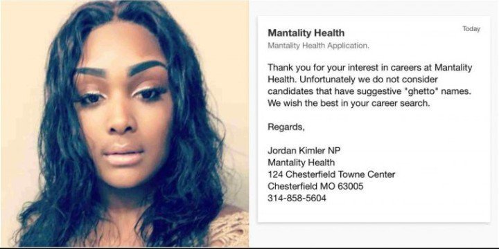 Американка Гермиша Робинсон подала свое резюме на вакансию на должность представителя службы поддержки клиентов. На что получила довольно оскорбительный ответ: «Спасибо за ваш интерес к карьере в Mantality Health. К сожалению, мы не рассматриваем кандидатов, чьи имена наводят на размышления о гетто. Мы желаем вам успехов в развитии вашей карьеры».