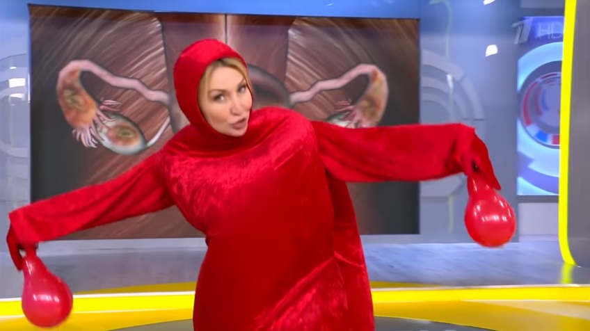 На днях Малышева в очередной раз шокировала публику, когда пригласила на передачу поющую матку. В роли женского органа репродуктивной системы выступила российская актриса Светлана Галка. Она вышла в студию в красном бархатном костюме, напоминающем форму матки, станцевала незатейливый танец и спела песенку о деторождении.