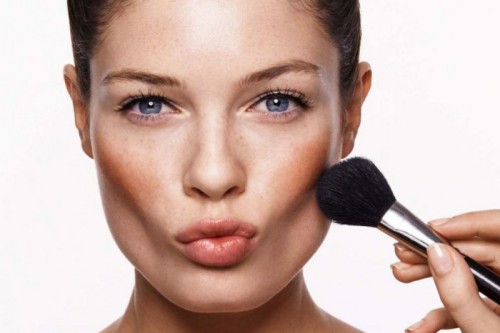 Нанесите уход по типу кожи, праймер, тональное средство. Замаскируйте воспаления, освежите область вокруг глаз. При необходимости, закрепите тон пудрой. Контуринг лица для начинающих пользователей легче выполняется по слегка припудренной коже сухими продуктами.