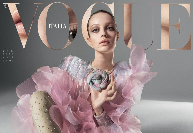 Мартовский номер посвятили новой реальности, отфильтрованной через экраны смартфонов. "В наше время необязательно (или даже опасно) видеть, трогать и разговаривать друг с другом не посредством экранов, – написал главный редактор Эммануэль Фарнетти. – Мы задались вопросом: если реальная жизнь становится отфильтрованной экраном, что тогда означает "реальность" в современном мире? Именно этот вопрос вдохновил обложку месяца. Она стала первой в истории журнала, посвященной девушке, которой не существует. По крайней мере, в реальной жизни".