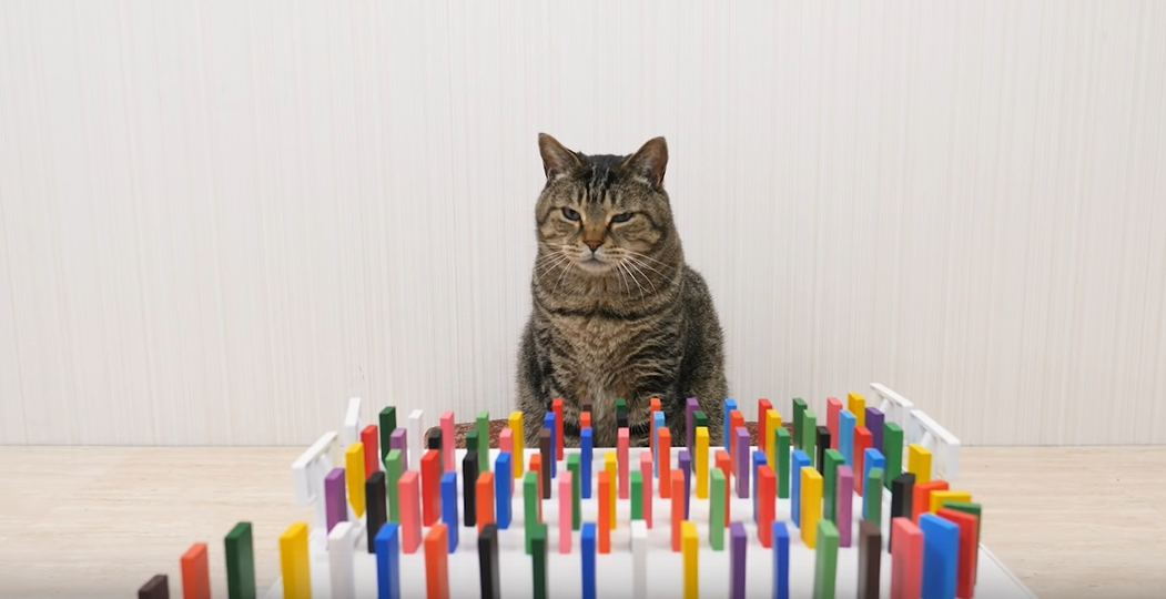 На ютьюб-канале Cat Navi Desk появилось видео, где кошки воплощают в жизнь принцип домино. Автор канала выстроил из домино длинные дорожки, а они запускают механизм в действие своими лапками. А в финале еще получают за это еду! Это хочется пересматривать снова и снова, смотрите сами: