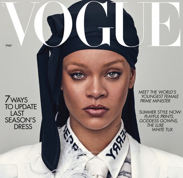 Рианна стала героиней майского номера британского Vogue. На обложке певица предстала в деконструированном жакете Maison Margiela Джона Гальяно и повязке на голову, традиционной в афроамериканской культуре (дюраг). Дюраг популярен в хип-хоп среде и считается символом "черной" красоты. А Рианна — очень яркая представительница этой красоты.