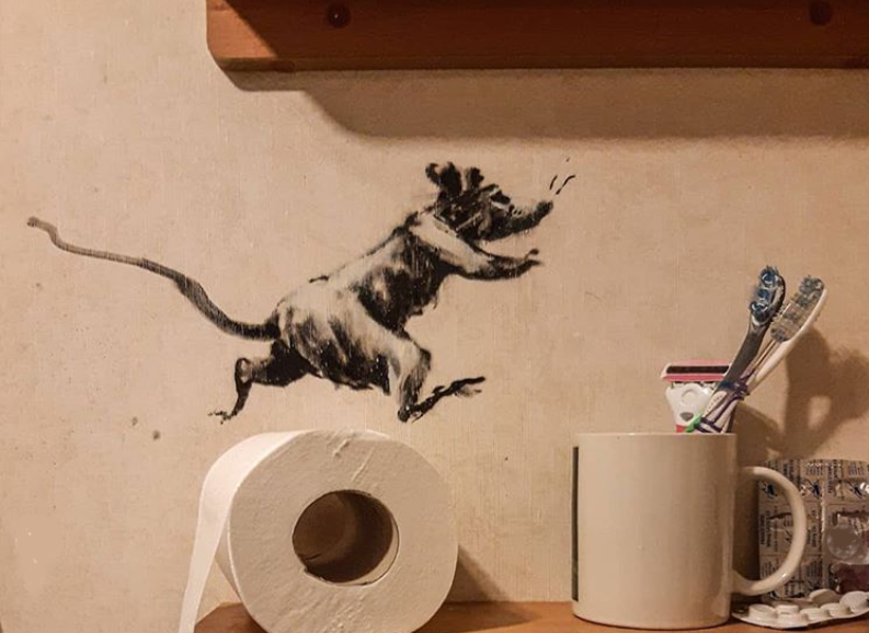 Уличный художник Бэнкси, как и все мы, выполняет распоряжение сидеть дома во время пандемии. Он лишился привычных для себя арт-площадок под открытым небом, поэтому вынужден творить в собственной квартире.