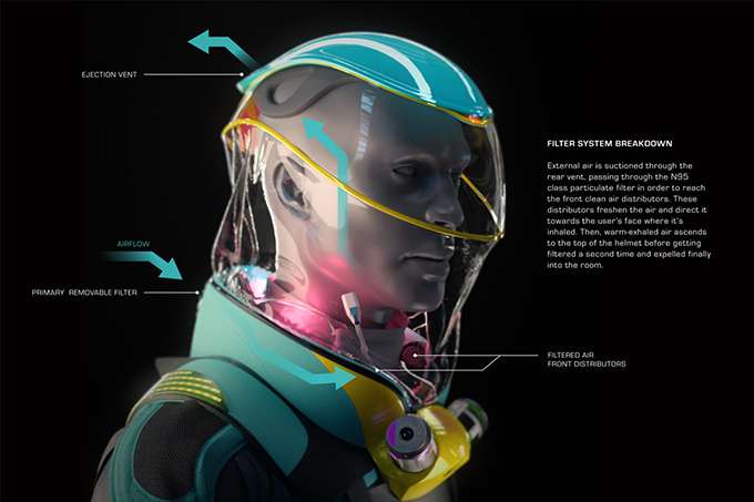 Костюм индивидуальной защиты назвали Micrashell. Он совершенно безопасен для взаимодействия во время пандемии и легко поддается дезинфекции. Костюм сделан из прочной ткани, устойчивой к порезам, и оснащен шлемом с фильтрацией воздуха с прозрачным экраном, подсветкой, голосовой связью и камерой. Управлять им можно с помощью приложения на смартфоне.