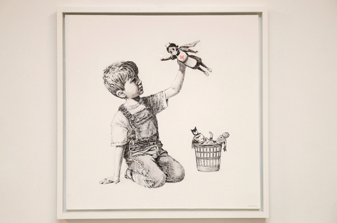 Напомним, картина Бэнкси, размером 1 квадратный метр, размещена в фойе больницы , рядом с отделением скорой помощи в начале мая. На монохромном рисунке изображен мальчик, который играет фигуркой медсестры, пока старые супергерои — Бэтмен и Человек-паук — валяются в мусорке. Рука медсестры вытянута, как у Супермена, а Красный Крест на ее фартуке — единственный цветной элемент картины.