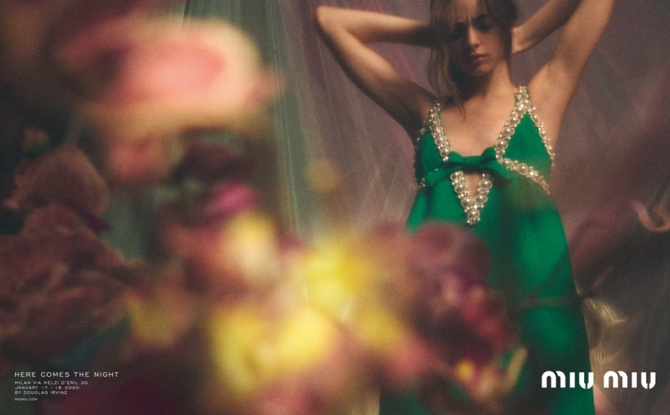 Miu Miu представили кампейн коллекции Pre-Fall 2020. Фотосессию назвали Here Comes the Night. В ней приняли участие актриса Эсме Крид-Майлз, а также модели Малайка Холмен, Каспер Капица, EZ, Тан Хе, Томива Адешина и Патриция Пекарская.