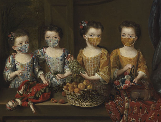 Музей искусств и истории при Кембриджском университете Фицуильяма выпустил открытки с репродукциями картин. Герои на картинах изображены в масках.