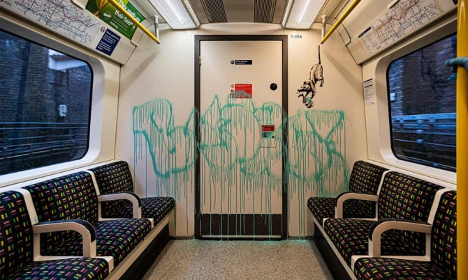 Бэнкси показал в опубликованном ролике в инстаграме как ему удалось проникнуть в метро и нарисовать граффити . В видео звучит фрагмент песни Tubthumping британской рок-группы Chumbawamba. Строчку I get knocked down, but I get up again из этого трека он переделал в I get lockdown, but I get up again. Получилось "Меня изолируют, но я снова встаю".