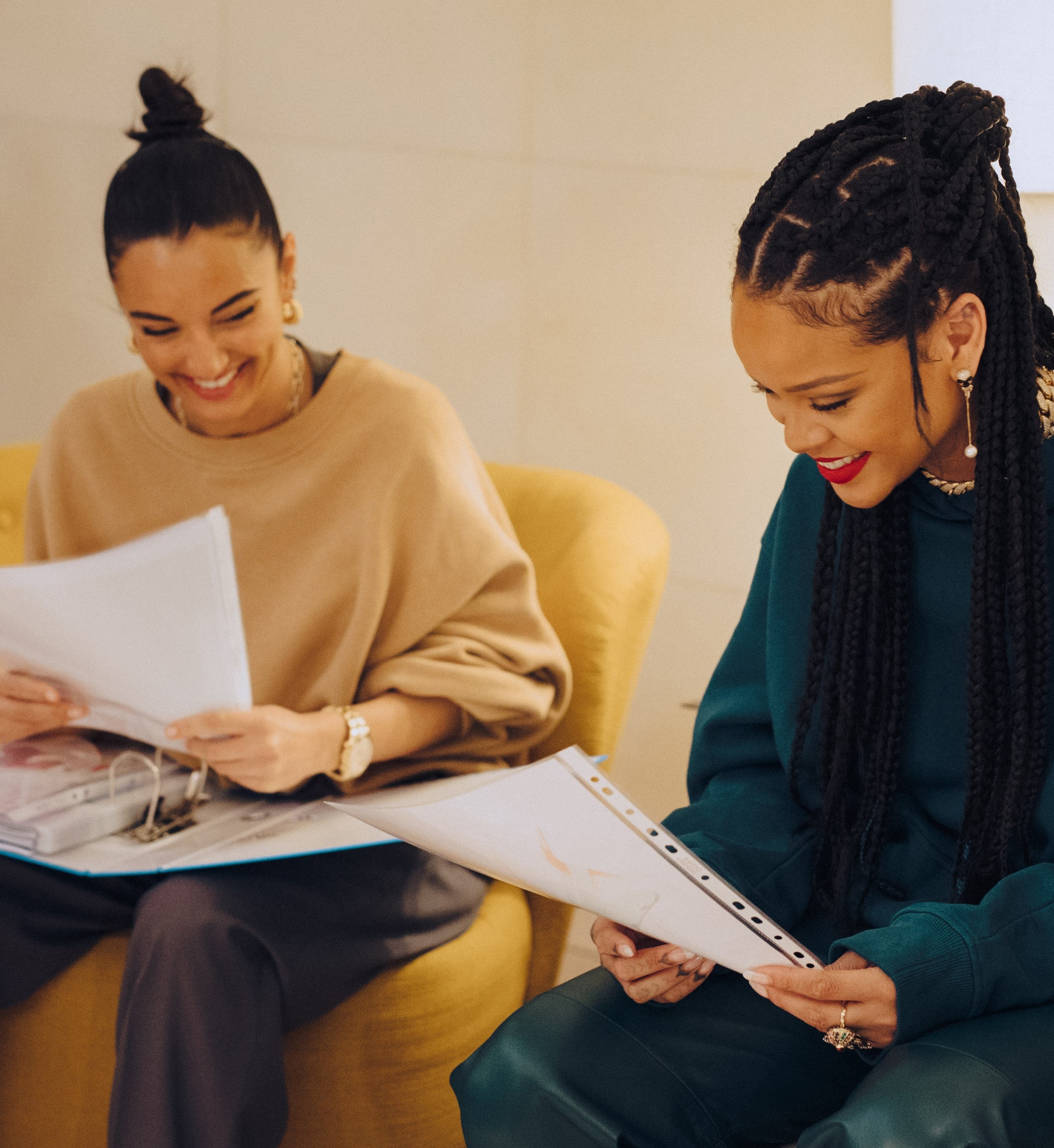 Коллаборацию с Аминой инициировал креативный директор Fenty Джалил Вивер. Они с дизайнером давние друзья. Когда Муадди запустила собственный бренд Amina Muaddi в 2018 году, Вивер заказал несколько пар для проектов Рианны. И он, и певица остались довольны и решились на полноценную коллаборацию. По мнению Джалила, Амина такая же целеустремленная и самобытная, как и его начальница.