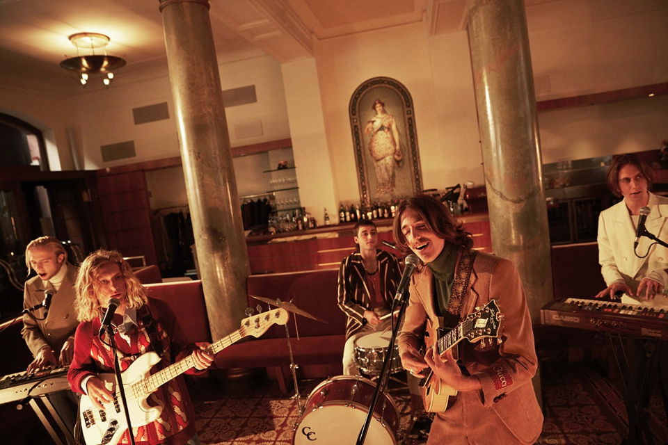 Mytheresa и Gucci завербовали австралийскую музыкальную группу Parcels для создания атмосферного лукбука и видео, где артисты зажигают с ног до головы одетые в новую капсулу. Некоторые из выдающихся аксессуары включают в себя спортивную сумку Horsebit 1955 зеленого цвета с золотыми пряжками «для лошадей», а также льняные и хлопковые двубортные блейзеры.