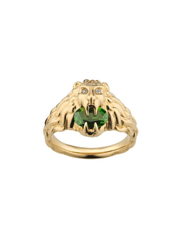 Модный дом Gucci представил коллекцию высокого ювелирного искусства Lion Head. Ожерелья, кольца и серьги украшены головой льва. Они созданы из белого и желтого золота, бриллиантов и цветных драгоценных камней: изумрудов и аквамарина.