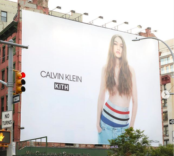 Джиджи Хадид стала лицом кампании Calvin Klein & Kith. У себя в инстаграме модель поделилась снимками с рекламными щитами, на которых она позирует в вещах из нашумевшей коллаборации.