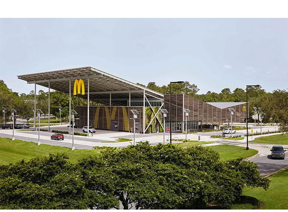 Во Флориде, на курорте Уолт Дисней открылся новый McDonald's – первый в мире с нулевым потреблением энергии. Об этом пишет designboom.