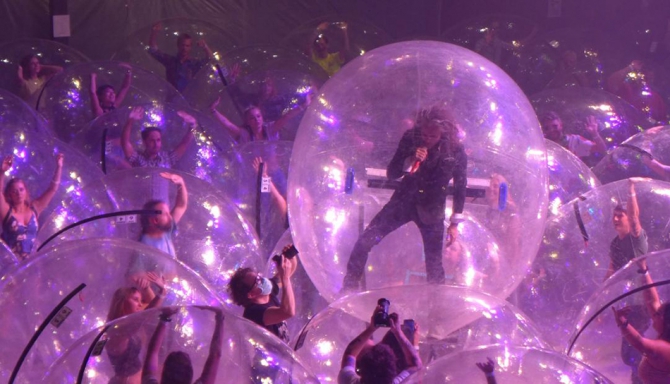 В Оклахоме прошел музыкальный концерт, на котором и музыканты, и гости находились в аэрозорбах. Такой формат проведения во время карантина придумала местная рок-группа The Flaming Lips, сообщает CNN. Мероприятие посетило несколько сотен человек.