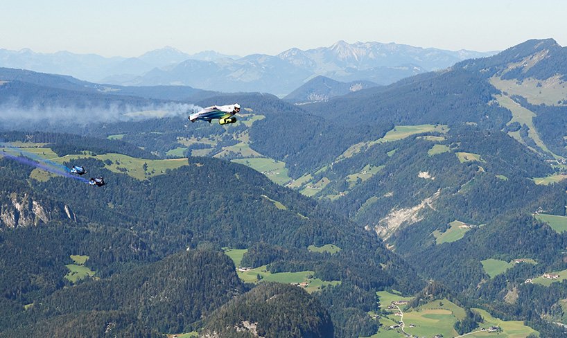 Компания также показала ролик, в котором запечатлен первый полет с электрифицированным вингсьютом от BMW. Зальцманн вместе с двумя другими участниками прыгнул с высоты 3000 метров, и они вместе летели в сторону горного массива. При этом парашютист — автор идеи добрался до места назначения раньше своих коллег за счет электрического привода.