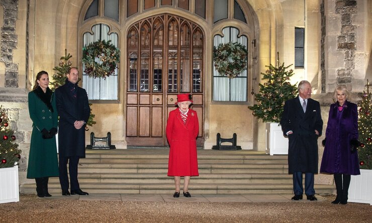 Герцоги Кембриджские отправились в поездку по всей Англии на королевском поезде, чтобы поддержать подданных после недавнего карантина. По случаю их возвращения Елизавета II организовала им радушный прием — вместе с принцем Чарльзом и Камиллой Паркер-Боулз она встретила их у порога Виндзорского замка под аккомпанемент рождественского хора.