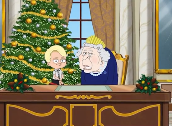 Гэри Джанетти, продюсер мультсериала "Гриффины", опубликовал в инстаграме пародию на рождественское поздравление королевы Елизаветы. В анимационном ролике Елизавета II обращается к нации вместе со своим правнуком принцем Джорджем. Фрагмент сделан в стиле будущего мультсериала "Принц", где принц Джордж оказывается совсем не милым, а язвительным и циничным.