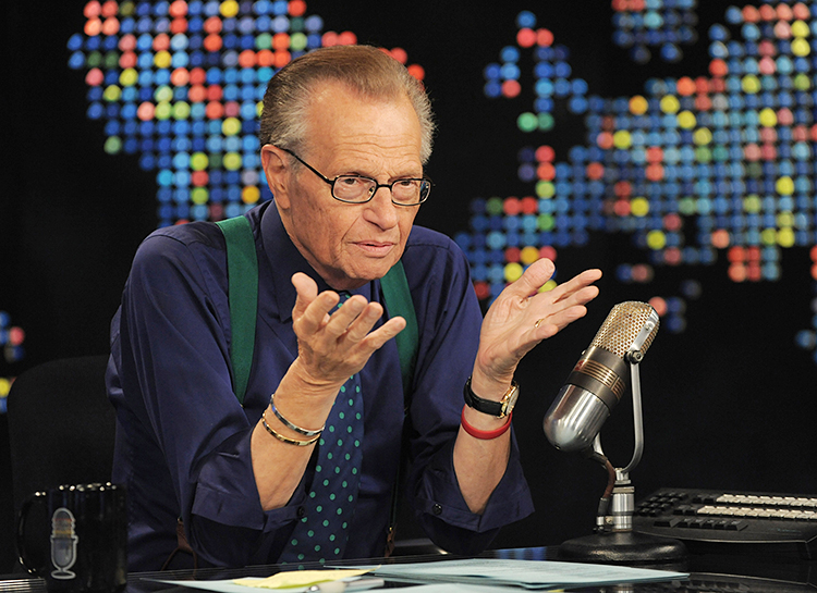 С 1985 по 2010 год Кинг брал интервью у всех: от действующих президентов и мировых лидеров до знаменитостей и верующих, наблюдающих за НЛО. За время журналистской карьеры Ларри Кинг провел свыше 60 тысяч интервью. На его передаче побывал и Дональд Трамп , и Билл Клинтон , и даже Владимир Путин . Кинг получил две премии Peabody Awards за свою работу на радио и телевидении. На протяжении всей своей карьеры он также подшучивал над своей личностью, появляясь в таких шоу, как "Симпсоны", "Гравити Фолз".