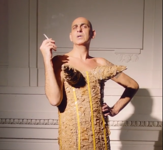 В инстаграм-аккаунте бренда появилось видео, в котором муза Жан-Поля Готье модель Танель Бедроссианц повторяет кутюрный образ Jean Paul Gaultier, используя картон, гвозди, скотч и степлер.