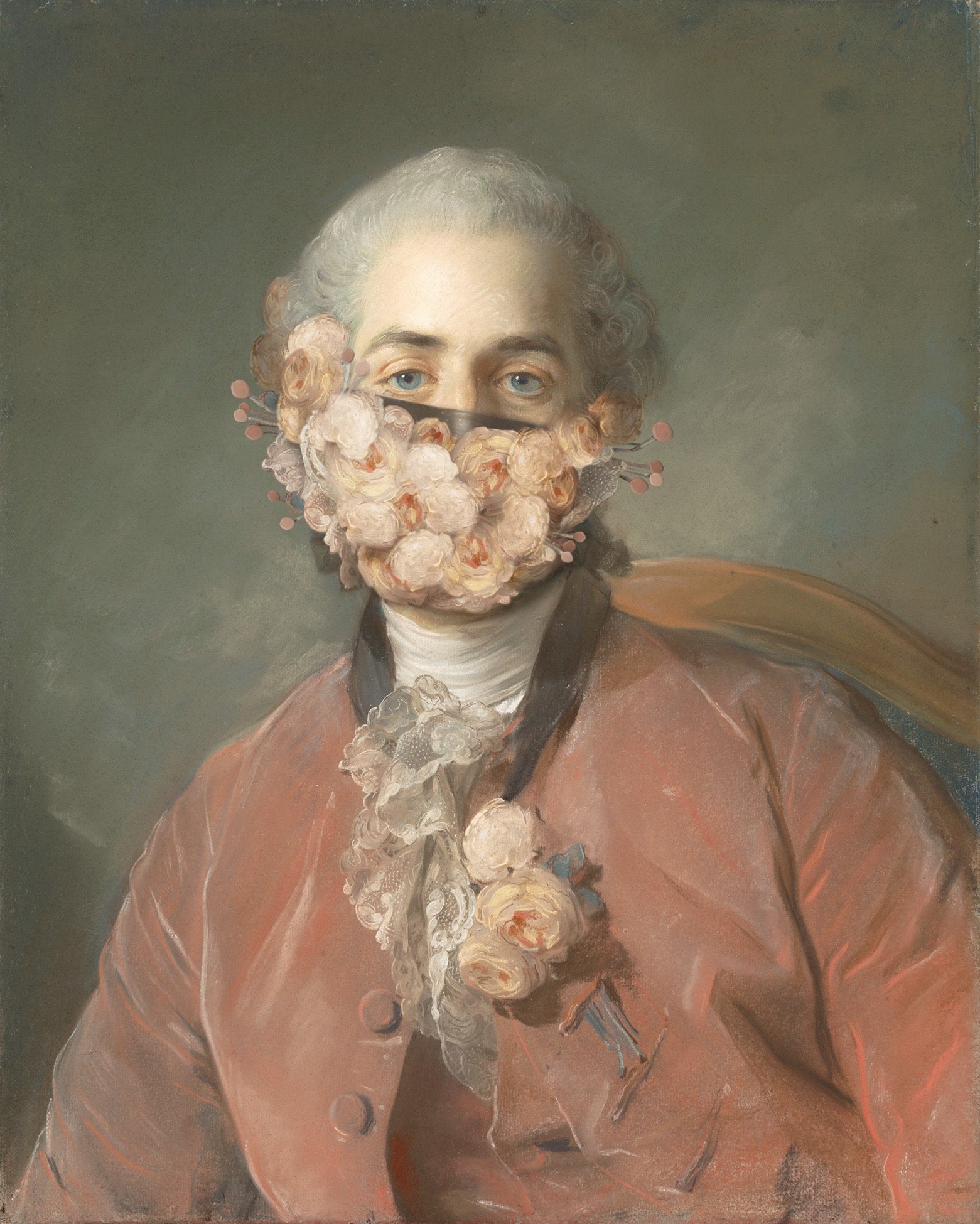 Немецкий художник Волкер Гермес решил пофантазировать, как бы выглядели портреты старых мастеров, если бы их герои носили маски. Волкер не ограничился классической хирургической маской. Наоборот, они сделаны из кружев, лент и цветочных декораций, дополняя пышные наряды.